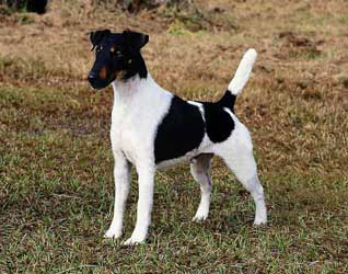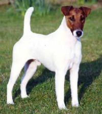 ОПИСАНИЕ ПОРОДЫ. Фокстерьер наделен всеми качествами, необходимыми, чтобы атаковать противника - у него сильные челюсти, хорошо развитые зубы, он обладает большой физической силой, а главное -бесстрашием. Это хорошо сложенная, элегантная, силь ная собака. Высота в холке - не более 40 см, вес - около 8 кг. Суки немного меньше. Голова уплощенная, узкая. Морда сужается по направлению к носу. Нос черный. Глаза небольшие, темные, глубоко посаженные, живые. Уши V-образные, свешивающиеся вперед. Шея тонкая и мускулистая. Хвост купирован на четверть длины, поднят вверх. Шерсть густая, блестящая. Основной окрас всегда белый с небольшими черными или коричневыми пятнами